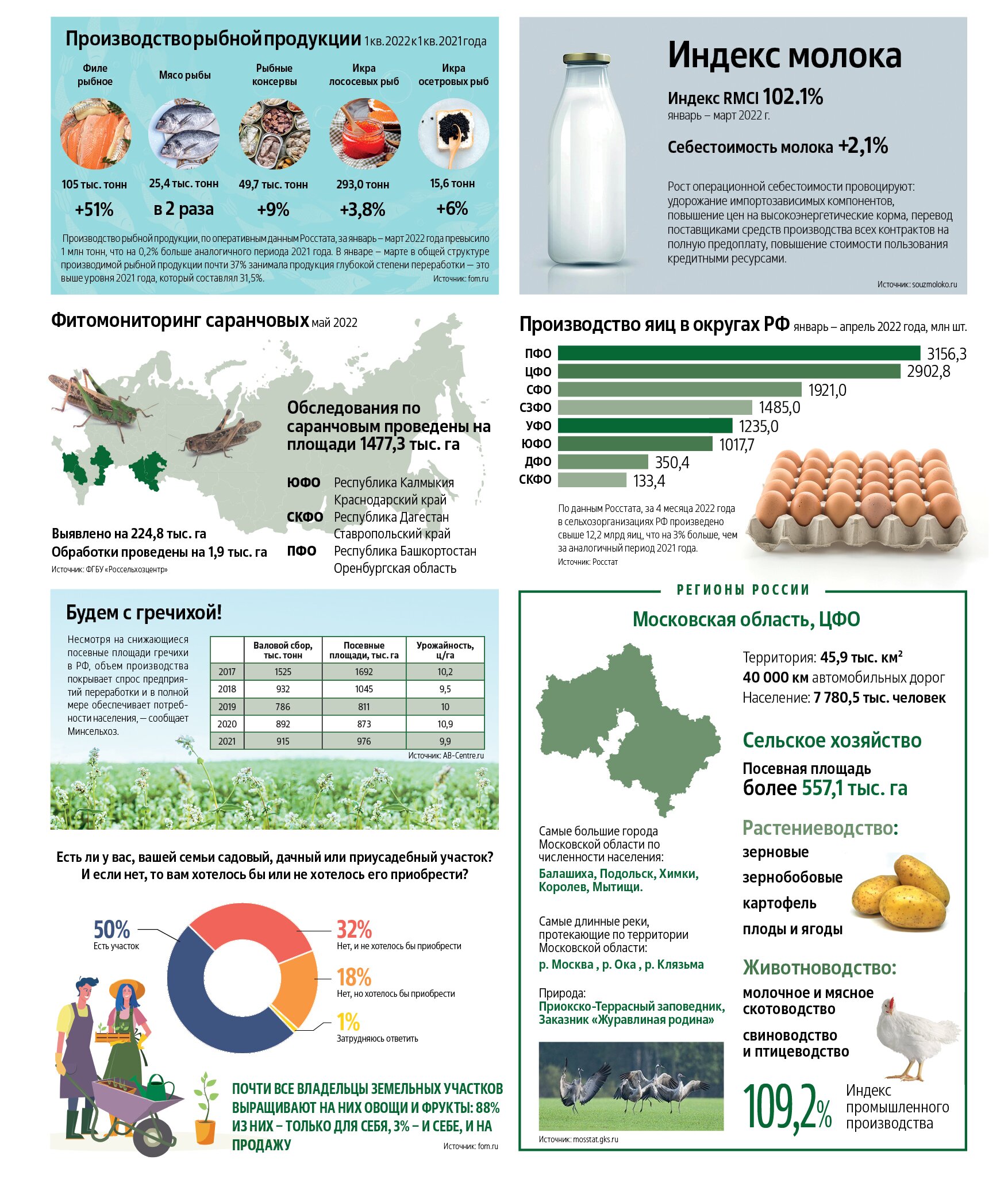 Несмотря на сложности в геополитике и экономике, аграрный сектор продолжает развиваться и наращивать производство. В каких направлениях и регионах сельхозпроизводители получили лучшие результаты? В каких отраслях выросла себестоимость производства? И от кого нужно спасать регионы России? Цифры, факты и интересные моменты в нашей инфографике.