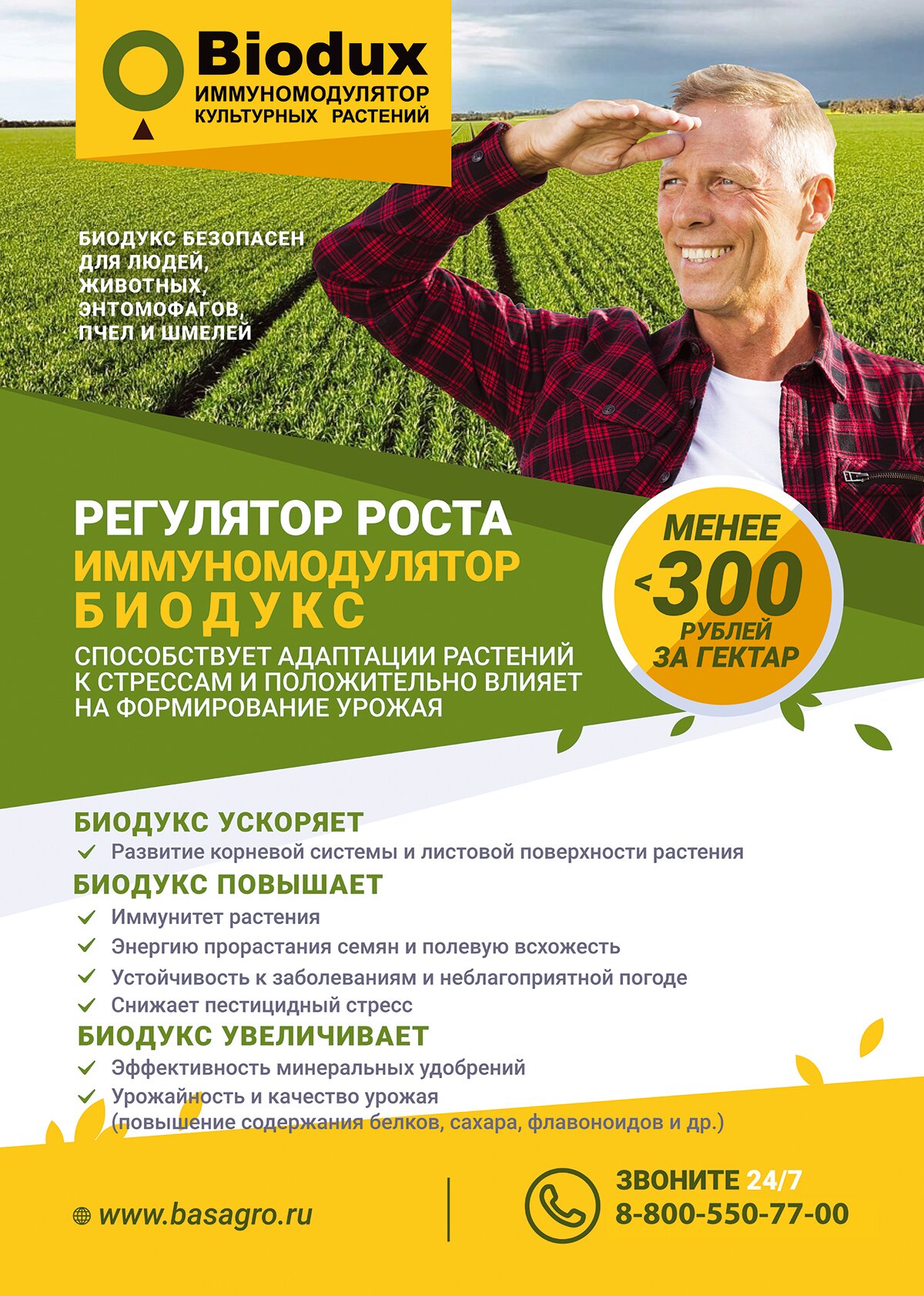 Норма расхода БИОДУКС: на пшенице, нуте, рапсе, сое, подсолнечнике — 2–4 мл/га, по нормам на остальных культурах Вас проконсультируют специалисты эксклюзивного дистрибьютора на территории России — «БиоАгроСервис».