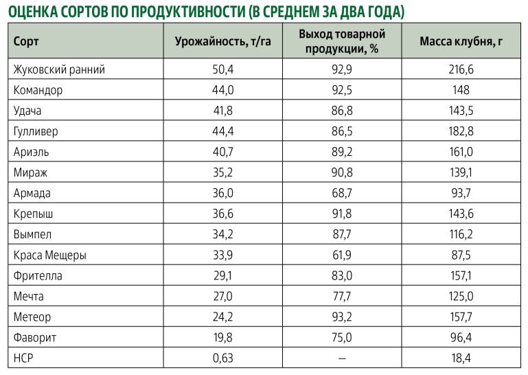 Более толерантными к высоким температурам воздуха и вызванным этим фактором болезням оказались сорта Жуковский ранний, Командор, Удача, Гулливер и Ариэль. Это можно объяснить тем, что им удается до наступления угнетающей вегетацию растений жары сформировать урожай в более ранние сроки.