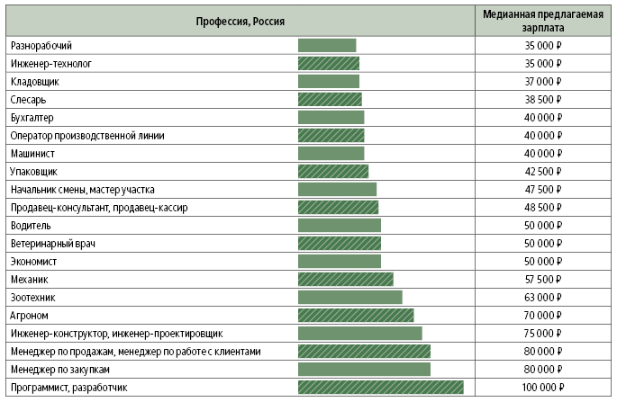 Сейчас работодатели из сферы сельского хозяйства предлагают будущим работникам в среднем до 45 тыс. руб. Более того, работа по ряду профессий в сельском хозяйстве даже выгодней, чем на этих же специальностях, но в других отраслях. Так, экономистам в сельском хозяйстве готовы платить до 50 тыс. руб., а в общем на рынке труда работодатели предлагают до 46 тыс. руб. Разница в зарплатах для инженеров-конструкторов может достигать 10 тыс. руб. в пользу сельхозотрасли, похожая ситуация в вакансиях для менеджеров по продажам (разница 15 тыс. руб.), менеджеров по закупкам (до 25 тыс. руб.).
