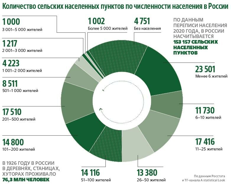 Для сравнения: почти 100 лет назад, в 1926 году, в России в деревнях, станицах, хуторах проживало 76,3 млн человек, а в городах числилось всего 16,4 млн жителей.