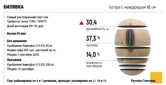 Как пояснили в Зерновом Соевом Союзе, самыми высокоурожайными сортами на богаре стали Билявка от компании «Русская Генетика» и Аванта от компании «СОКО», которые показали по 30 ц/га.