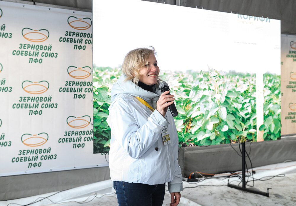 В июле представители соеводческих хозяйств Русской равнины и специалисты по выращиванию прибыльной культуры уже приезжали на первый показ — увидеть своими глазами, как идут этапы вегетации. На тот момент еще было сложно оценить успех того или иного сорта, но уже можно было сравнить развитие растений и больше узнать о перспективных новинках.
