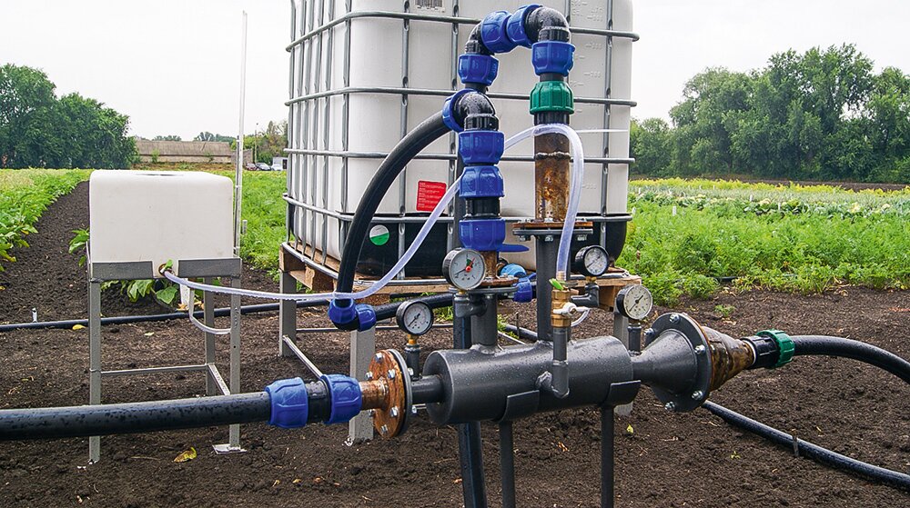 При всех способах орошения в вегетационный период проводят удобрительные поливы смесью удобрений и воды. В качестве подкормок обычно используют органику и «минералку». На прифермских участках чаще всего вносят органические удобрения — животноводческие стоки и птичий помет, если этого нет, берут минеральные. Но во всех случаях удобрения смешивают с водой в необходимых пропорциях и делают это для разбавления токсичных элементов питательных веществ. В качестве смесителей, в зависимости от способа полива, используют водоемы, струйные аппараты, инъекторы для ввода удобрений в оросительную смесь и другие. Однако у всех этих способов есть ряд серьезных недостатков, ограничивающих их широкое внедрение.