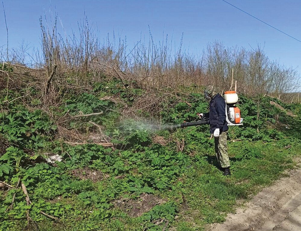 За четырехлетний срок работы нашего филиала с сорняком выработана стратегия проведения мероприятий, накоплен положительный опыт уничтожения. Первоочередным этапом борьбы с ним является обследование территории. Для снижения вредоносности особое значение имеет скашивание. Оно станет эффективным способом уничтожения борщевиков только при условии, что будет проводиться перед выходом растений в трубку, т. е. обязательно перед цветением. Каждое следующее скашивание проводят через три-четыре недели после предыдущего. Этот прием нужен для уничтожения всех генеративных побегов борщевика, несущих соцветия и, соответственно, цветки. Важно не давать борщевикам цвести, чтобы не образовались новые семена. А если скашивать только один раз в середине цветения — это будет лишь помогать дальнейшему размножению растений.