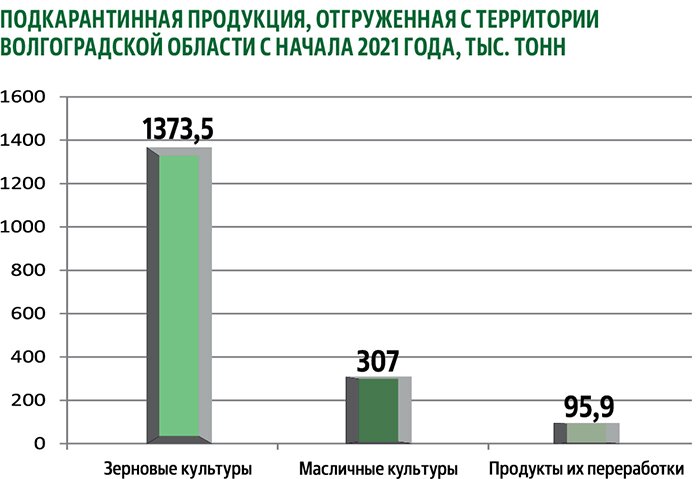 Всего с начала года с территории Волгоградской области (в другие регионы и на экспорт) было отгружено 1819,5 тысячи тонн зерновых и масличных культур, включая продукты переработки. Отправлено за границу почти 470 тысяч тонн подкарантинной продукции. В основном экспорт идет в Иран (266 тыс. тонн), Латвию (99 тыс. тонн) и Азербайджан (75 тыс. тонн). Вся подкарантинная продукция прошла фитосанитарный контроль и соответствовала требованиям стран-импортеров.