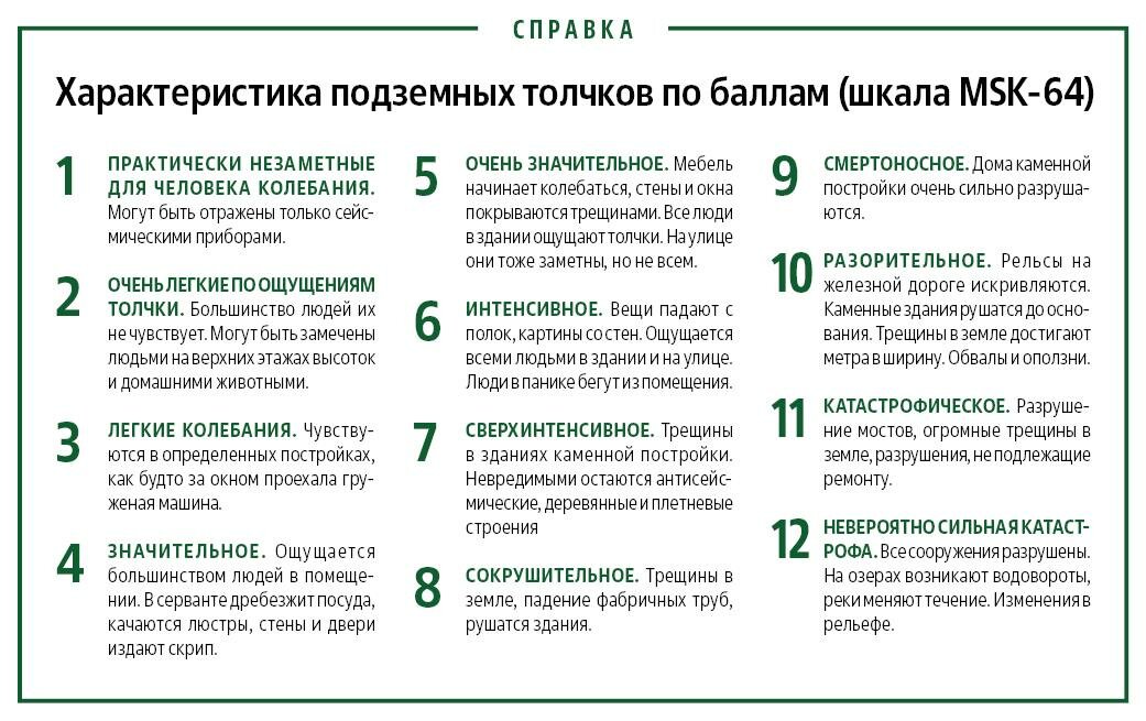«В Крыму действительно возможны серьезные землетрясения с магнитудой 6–7 баллов. Но толчки такой разрушительной силы, как в Турции, — более 7 баллов — маловероятны, особенно на Кубани. В предгорьях Кавказа бывают землетрясения с магнитудой 5 баллов, но не более», — говорит доктор физико-математических наук, заведующий лабораторией геодинамики Института теории прогноза землетрясений и математической геофизики РАН Александр Горшков.