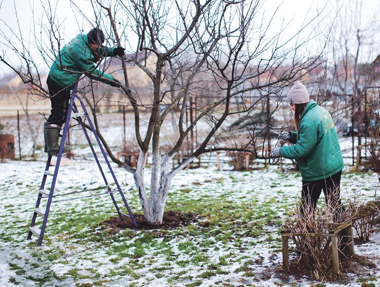 Зимнее время для садоводов считается отдыхом или каникулами, поскольку они от больших работ в принципе свободны. Но подготовка к новому сезону идет: закупается необходимый инвентарь, ремонтируется техника, проверяется температура в хранилищах, перебираются плоды. Но главное — уберечь деревья от морозов и грызунов. Корни могут подмерзнуть, если температура почвы на глубине 20 см понижается до –12…–18 °С, защитой служит снегозадержание — снежный покров, которым нужно укрыть и штамбы, и основания скелетных ветвей, не оголяя почву вокруг растений.