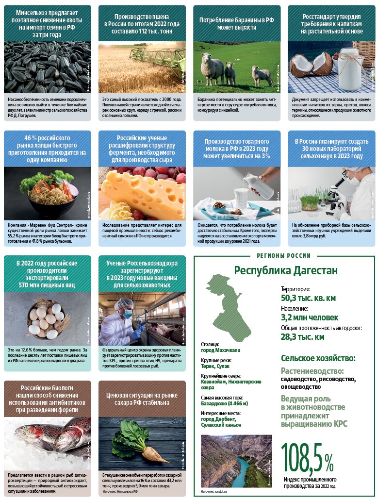 Принято думать, что в нашей стране ничего не происходит, но ситуация меняется. Изменяется законодательство, вводятся новые стандарты на продукты питания, финансируются сельхозлаборатории, увеличивается производство товарного молока, пшена и яиц, а также выявляется лидер года в производстве продуктов быстрого приготовления.