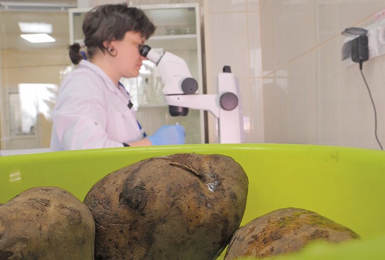 По словам Андрея Пахомова, перед закладкой картофель проходит лабораторные исследования в подведомственной Россельхознадзору испытательной лаборатории. Полный фитосанитарный анализ нужен для того, чтобы быть уверенными в качестве закладываемой продукции.